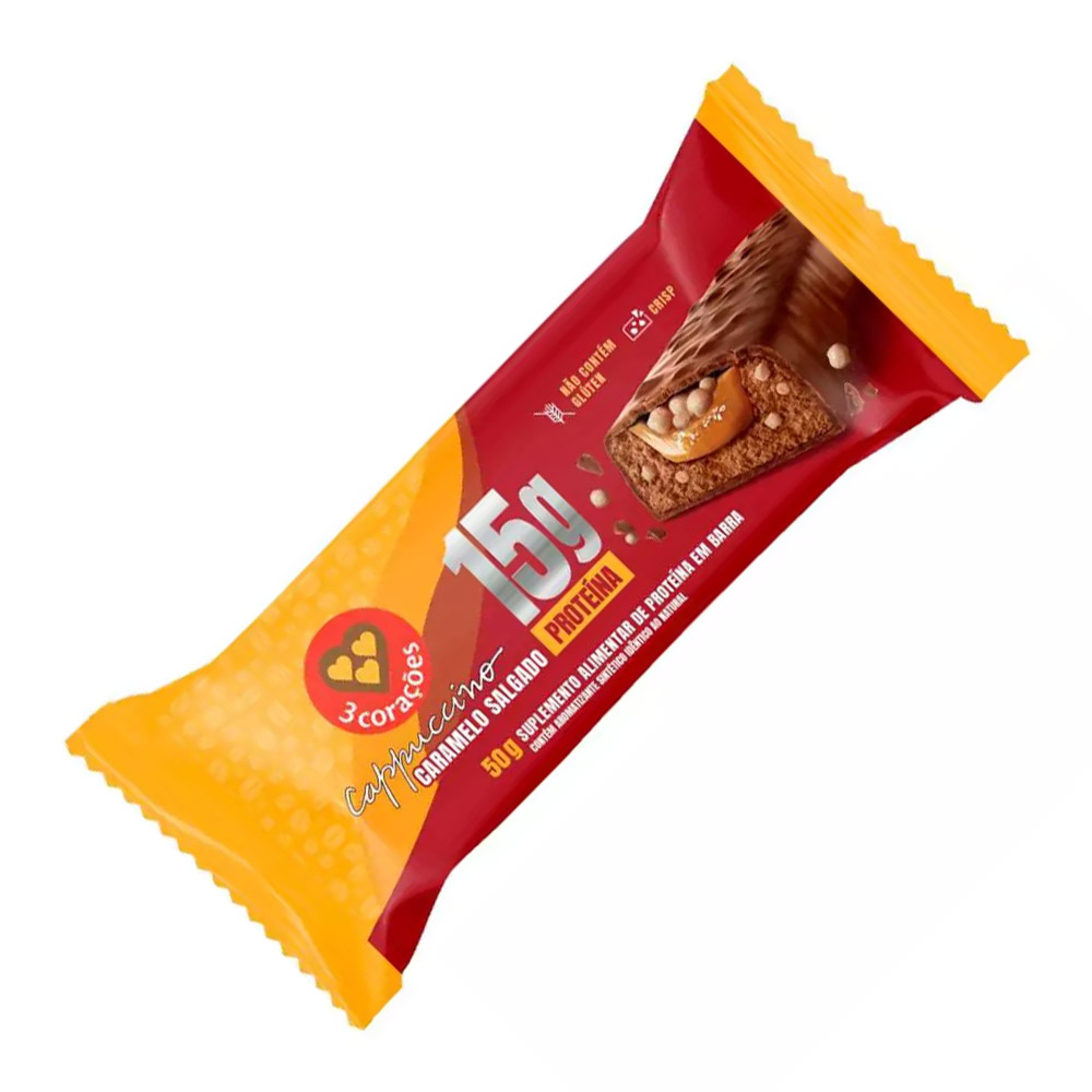 Barra De Proteína Cappuccino Caramelo Salgado 3 Corações 50g