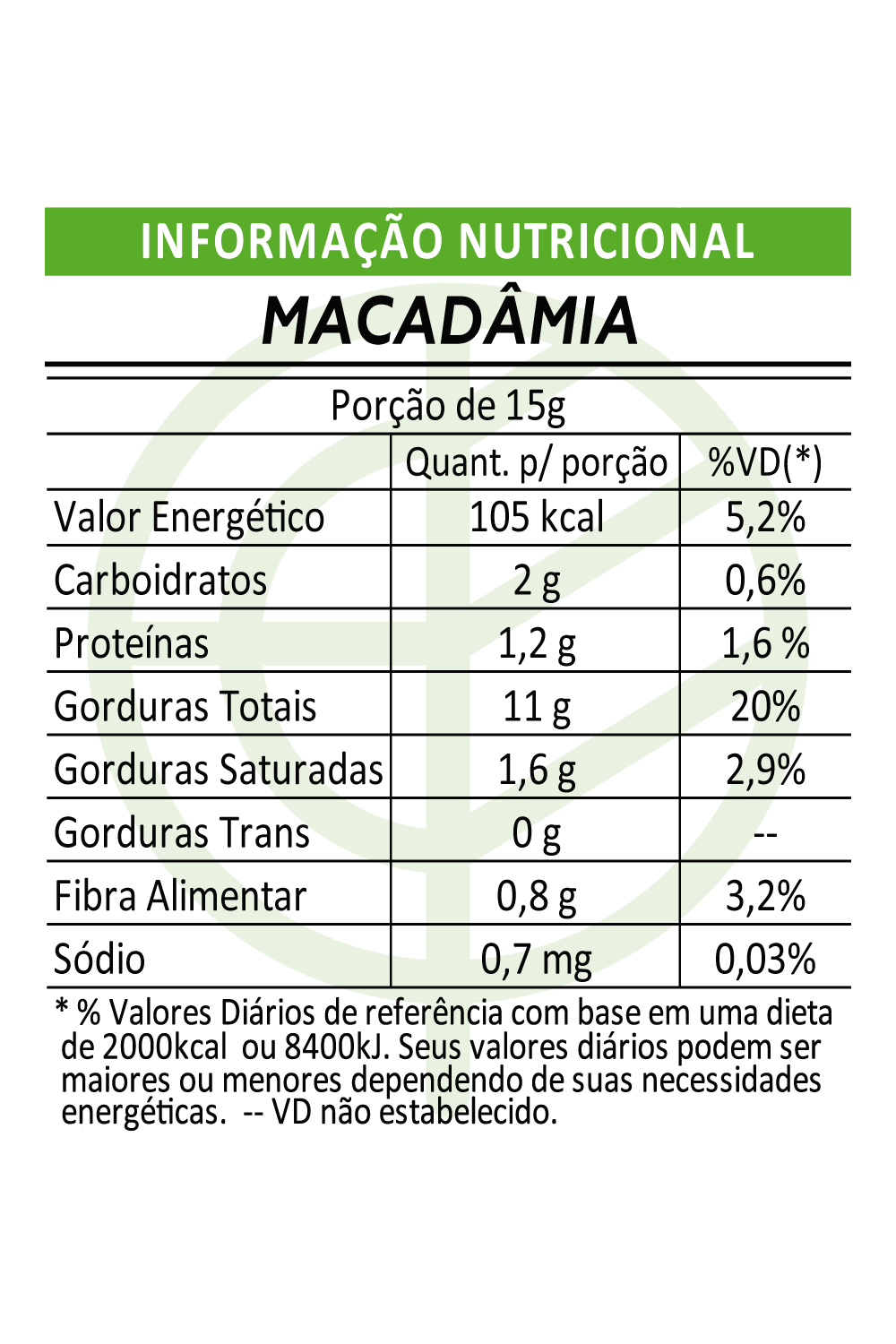 A noz-macadâmia é uma oleaginosa com sabor amanteigado. Cresce em regiões de clima tropical como Brasil, Austrália, Nova Zelândia e África do Sul. Rica em vitaminas, a macadâmia possui propriedades antioxidantes que combatem radicais livres que danificam as células, além de contribuir para a saúde óssea e cognitiva. O medo de consumir a noz devido ao ganho de peso deve ser deixado de lado, pois além de reduzir o apetite também estimula a queima de gordura, quando consumida de maneira moderada. A quantidade ideal para consumo é cerca de 20g diárias, o que equivale cerca de 2 unidades ao dia.