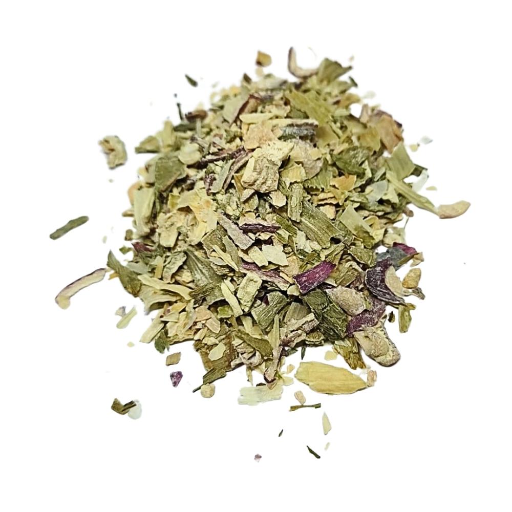 Caldo de galinha, cebolinha desidratada, cebola granulada, cebola roxa em flocos, amido de milho, sal rosa, glutamato monossódico, fosfato tricálcico e ácido cítrico. |