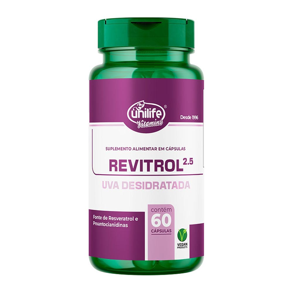 O Revitrol - Uva Desidratada 500 Mg Unilife é uma fonte concentrada de resveratrol, um poderoso antioxidante que oferece diversos benefícios para a saúde. Rico em polifenóis, o Revitrol protege as células dos danos causados pelos radicais livres, contribuindo para o envelhecimento saudável e a prevenção de doenças crônicas. Seja para cuidar do coração, fortalecer o sistema imunológico ou promover a saúde cerebral, o Revitrol é um suplemento natural que proporciona uma vida mais longa e com mais qualidade.